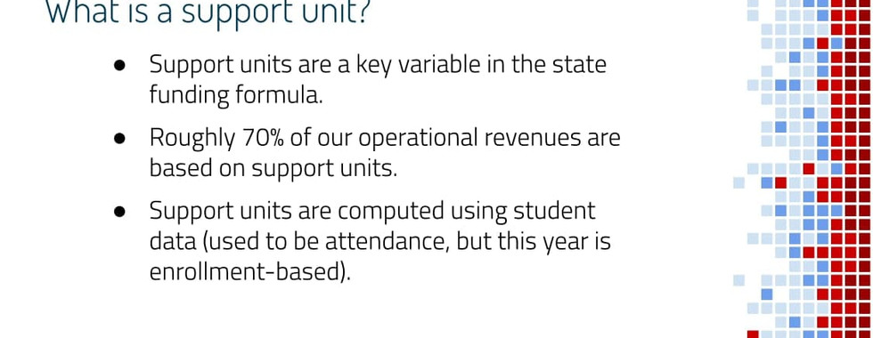 Up until last year budget was formulated based on average daily attendance (ADA). Now, due to C0vid, the last 2 years have been formulated based on enrollment.